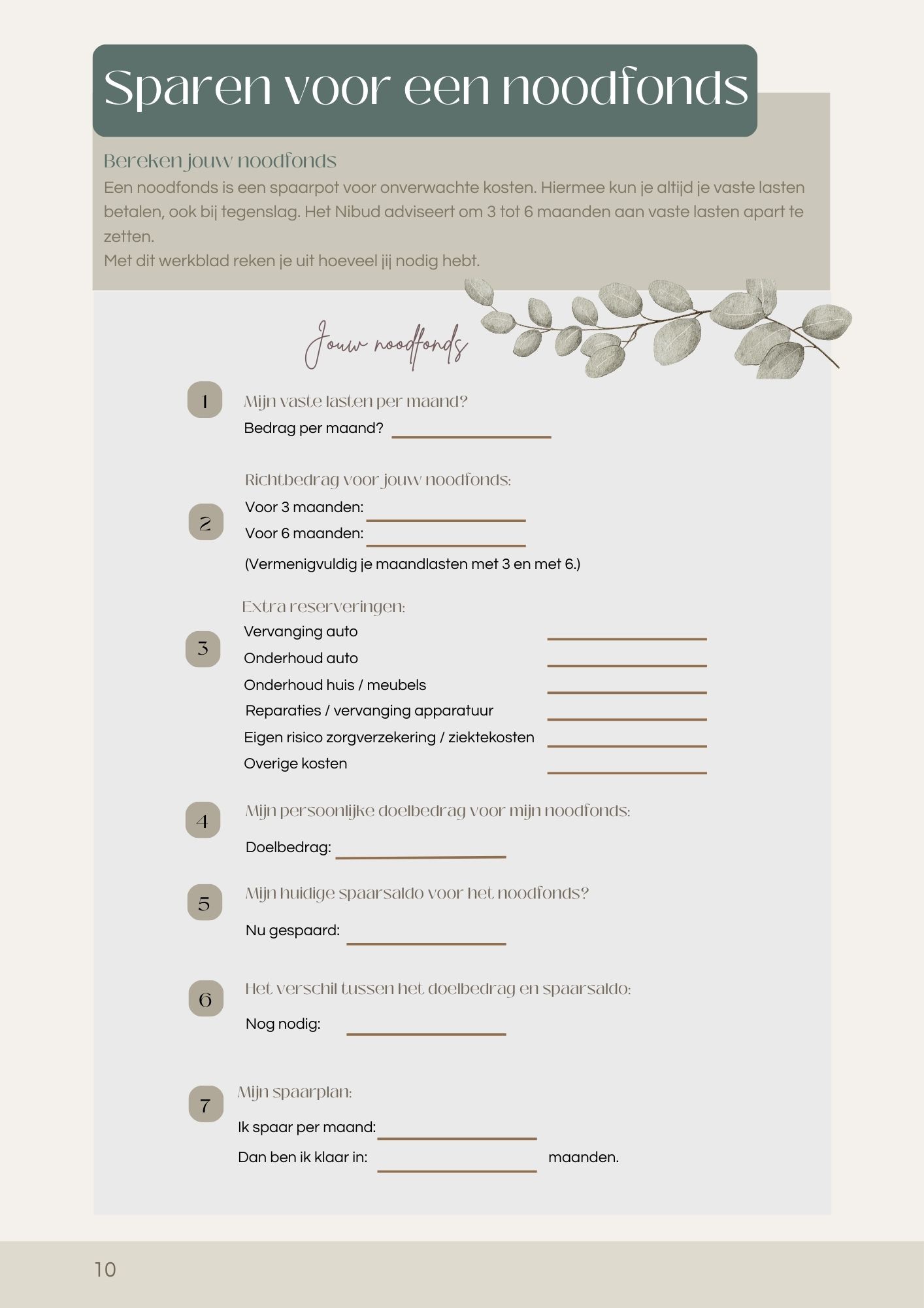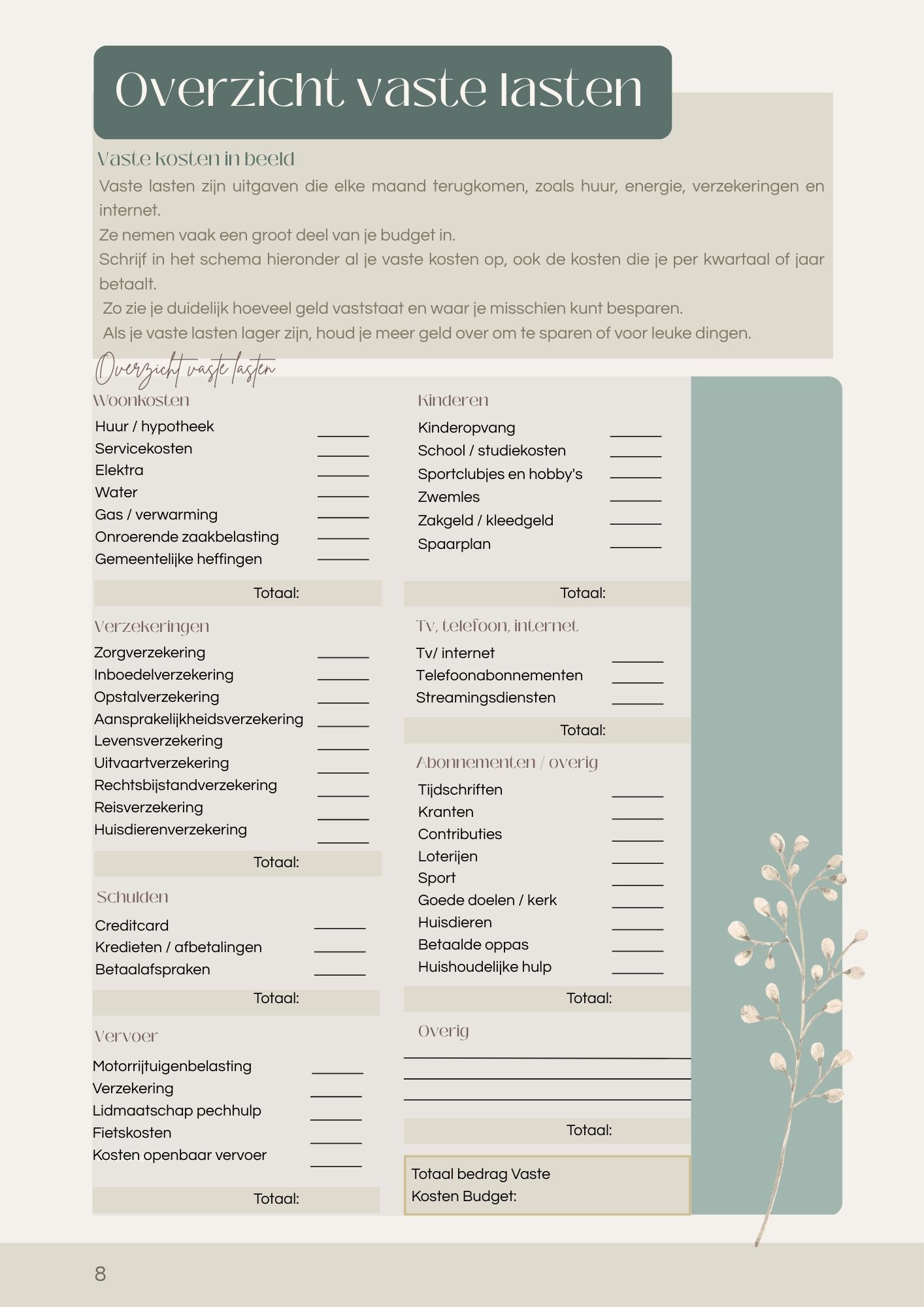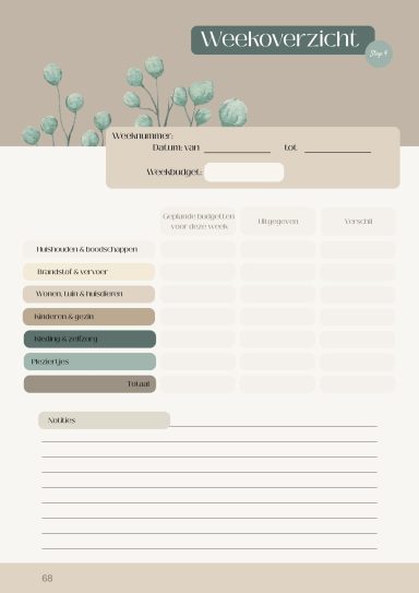Ruimte om persoonlijke inkomsten en uitgaven te noteren